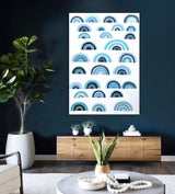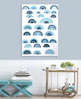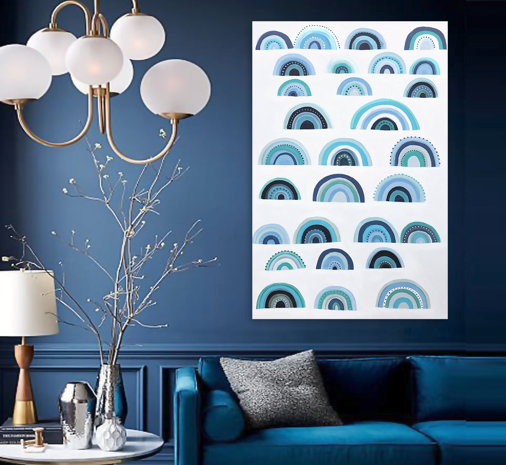 A plethora of hopeful, whimsical rainbows in various blue tones. Subtle, pearlescent details shimmer in the light.